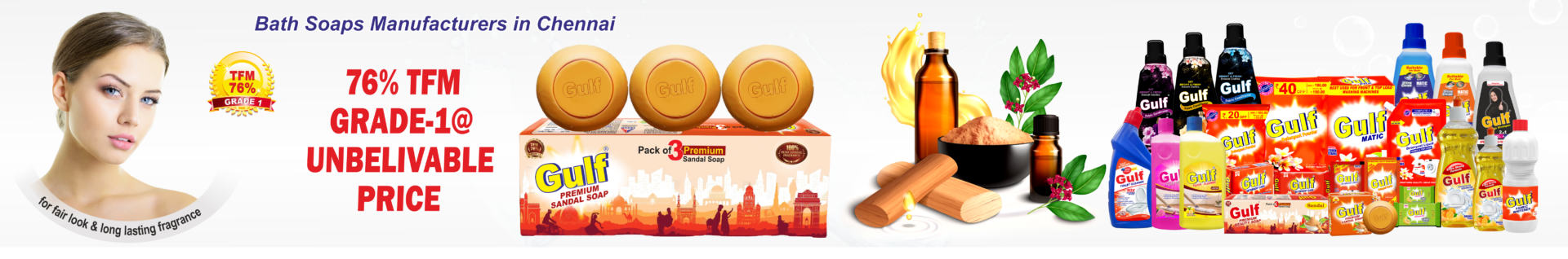 Gulf Soaps is Best Quality Bath Soaps Manufacturers in Chennai, Tamil Nadu, in India, We “Gulf Soaps” are engaged as the Manufacturer, Wholesaler, Supplier, Trader, Retailer and Exporter of Washing Powder, Detergent Powder, Detergent Cake, Dishwash Cake, Detergent Liquid, Dishwash Liquid, Floor Cleaner, Toilet Cleaner, Glass Cleaner, Fabric Conditioner, Fabric Whitener, Phenyle, Beauty Soaps and many more. Our products are high in demand due to their premium quality and affordable prices. Furthermore, we ensure to timely deliver these products to our clients, through this we have gained a huge clients base in the market. The array of our products is developed with most favorable quality basic material and our experts.